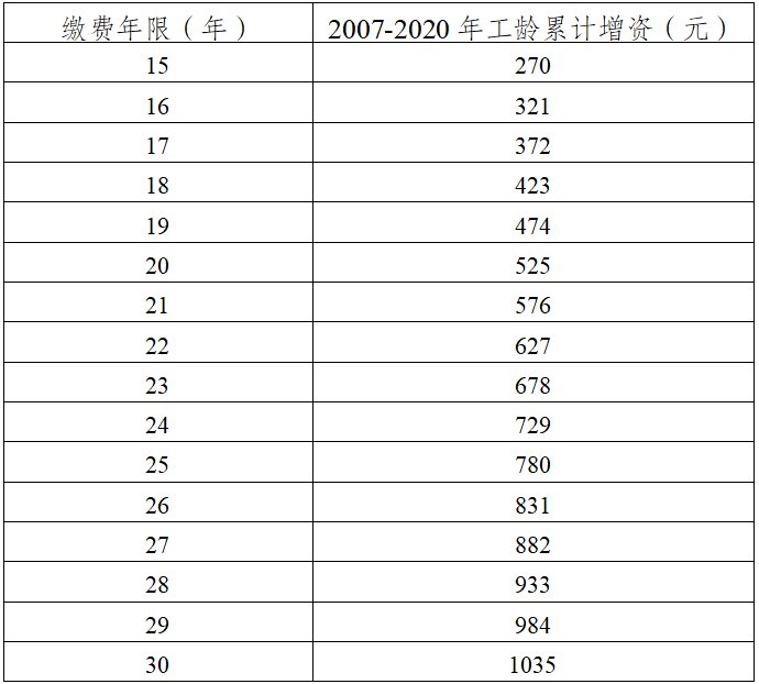 举个例子 2006年之前退休的,缴费15年的,到2020年时经过16年连续增资仅工龄增资一项,养老金就累计涨了270元;缴费16年的累计涨了321元,缴费17年的累计涨了372元……缴费30年的累计涨了1035元。可以看出,退休前每多交一年,经过连续16年增资后,仅工龄增资一项每年就会多涨51元。