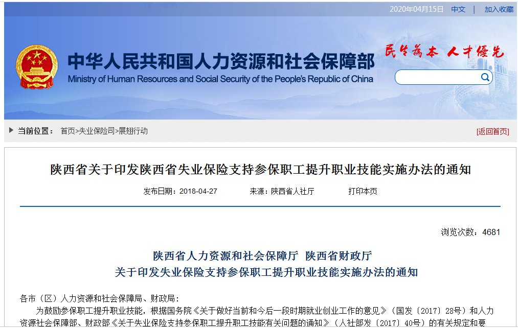 陕西省关于印发陕西省失业保险支持参保职工提升职业技能实施办法的通知