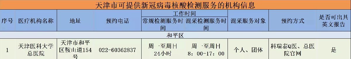 》》》2022天津市单人混检核酸检测点