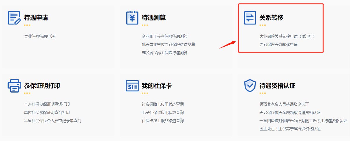 第三步:在【关系转移】中找到并点击【社保转移申请】,如下图所示;