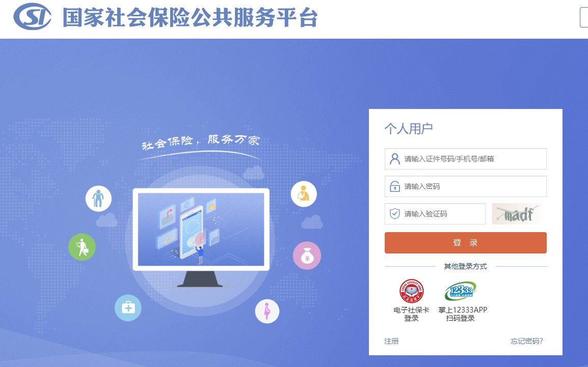 第一步:登录国家社会保险公共服务平台,如下图所示;