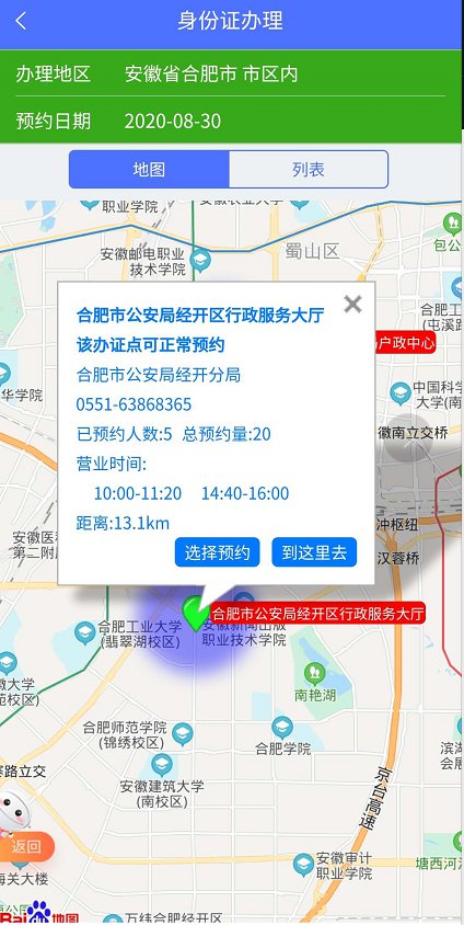 选择“预约办理” → 选择办理地区、预约日期,在地图上选择就近办理点,在线查看路线地图、营业时间、预约日期内该办理点已预约人数和总预约量,点击“选择预约” → 填写相关信息,即可完成在线预约。