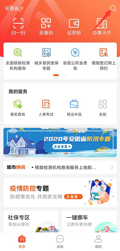 2.登录皖事通,搜索“身份证”,选择“身份证办理”。