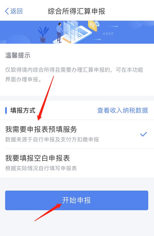 选择“我需要申报表预填服务”-“开始申报”。