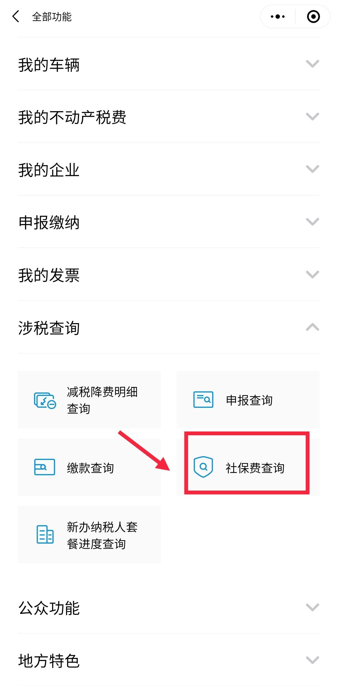 第三步:在页面中找到并点击【涉税查询】--【社保费查询】,如下图所示;