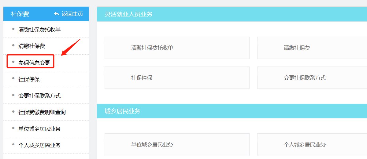 第三步:在【社保费】页面中找到【参保信息变更】,如下图所示;
