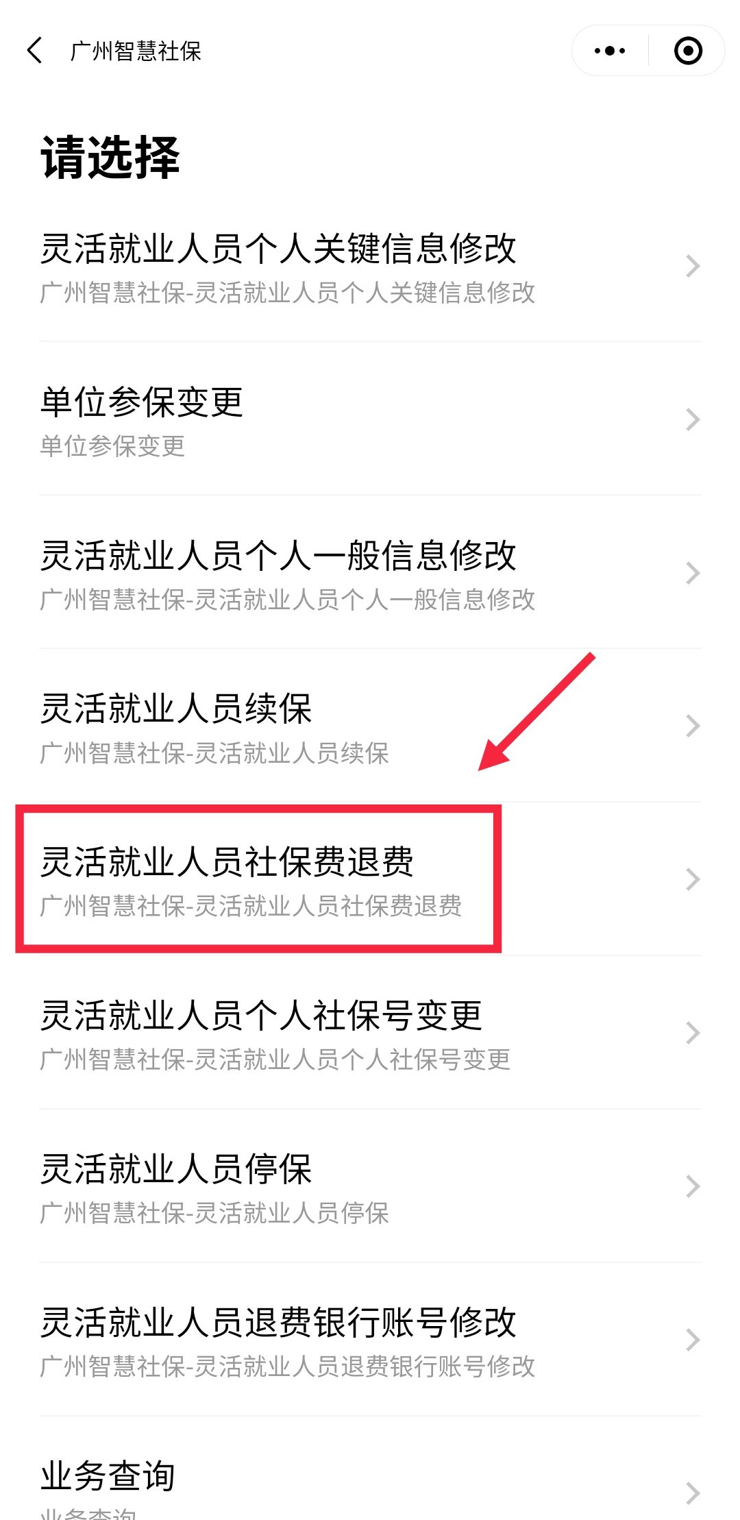 第四步:在页面中选择【灵活就业人员社保费退费】,如下图所示;