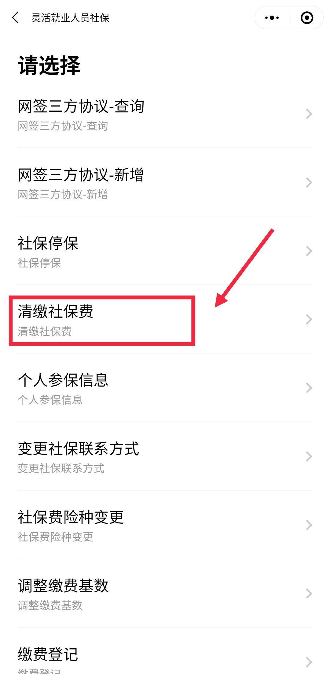 第三步:在页面中找到并点击【清缴社保费】,如下图所示;