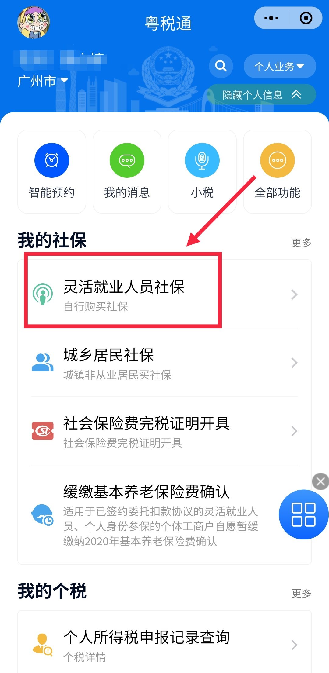 第二步:在页面中找到并点击【灵活就业人员社保】,如下图所示;