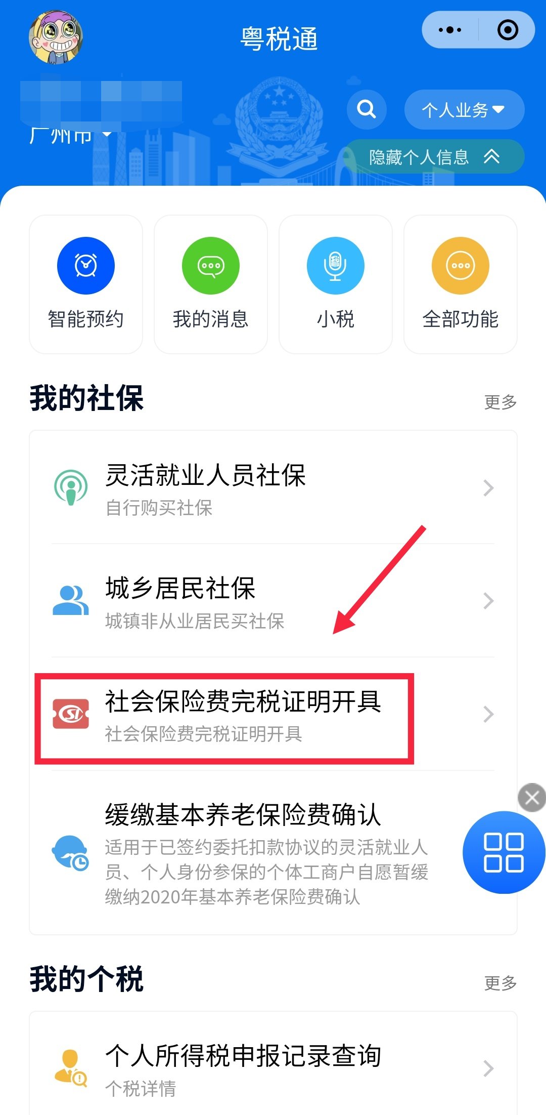 第二步:在页面中找到并点击【社会保险费完税证明开具】,如下图所示;