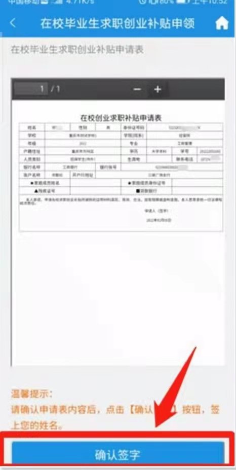 第⑤步:用户核对信息无误后,点击【确认签字】按钮进行签字。