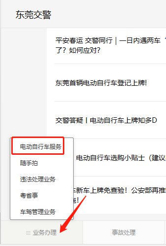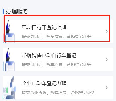 第二步,点击电动自行车登记上牌栏目