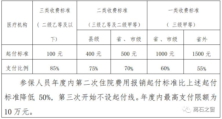 住院医疗费用经居民医保按规定支付后,还需个人负担的合规医疗费用可由居民大病保险按规定报销。起付线为10000元,合规医疗自付费用的75%给予报销,年度内最高40万元。2022年1月1日起,特困人员、低保对象、返贫致贫人口起付线降为5000元,报销比例提高到80%,取消封顶线。