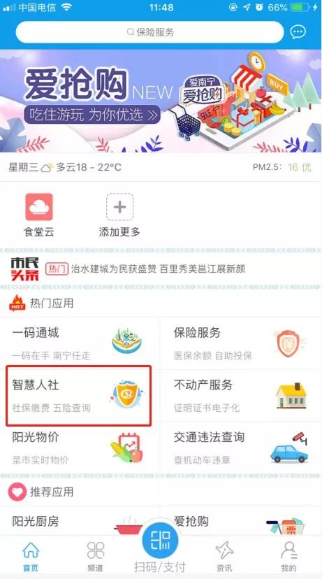 2、打开“爱南宁APP”进入热门应用“智慧人社”,点击“职业技能补贴”图标(以“爱南宁APP”为例)。