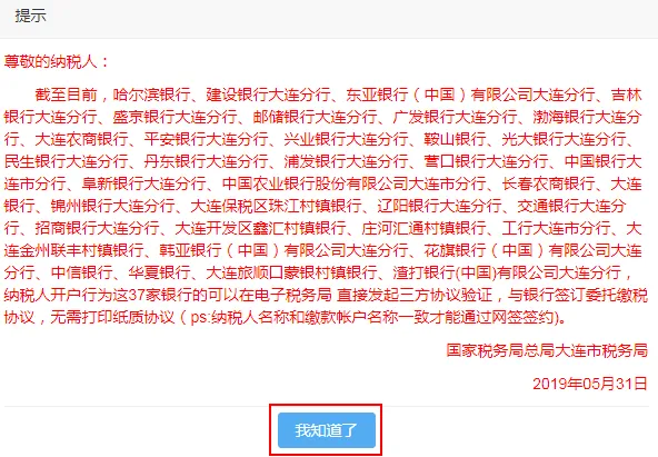 4、点击【新增】按钮,系统弹出如下提示:纳税人阅读后点击【我知道了】按钮。