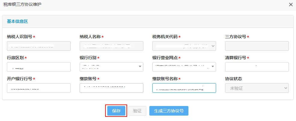 6、生成三方协议号后,点击【保存】按钮。
