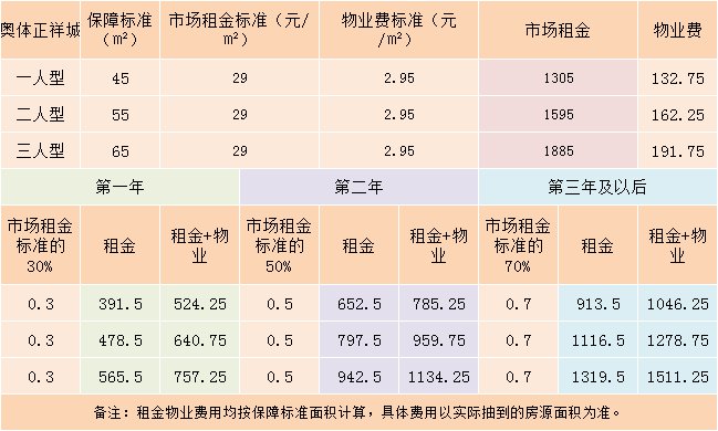 | 备注:租金物业费用均按保障标准面积计算,具体费用以实际抽到的房源面积为准。 | ||||||||