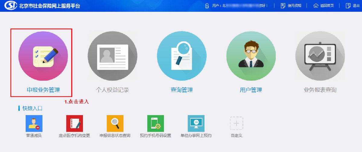 在【北京市社会保险网上服务平台】中,点击【申报业务管理】进入即可变更。