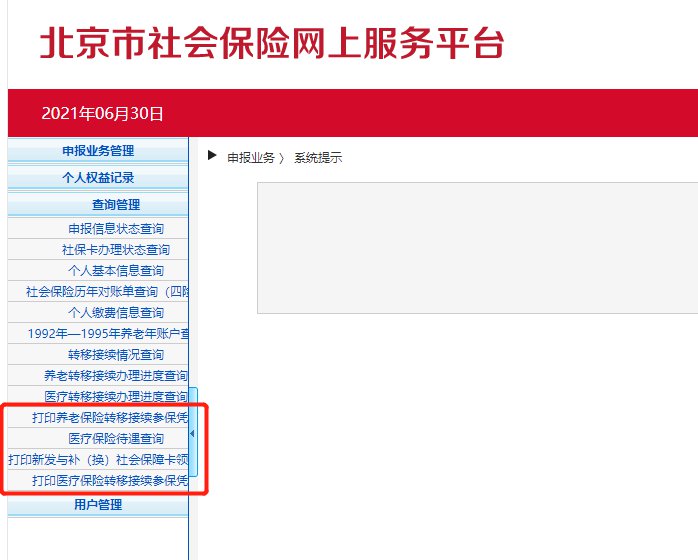 3、在“查询管理”模块下的 “打印医疗保险转移接续参保凭证”中打印《参保凭证》。