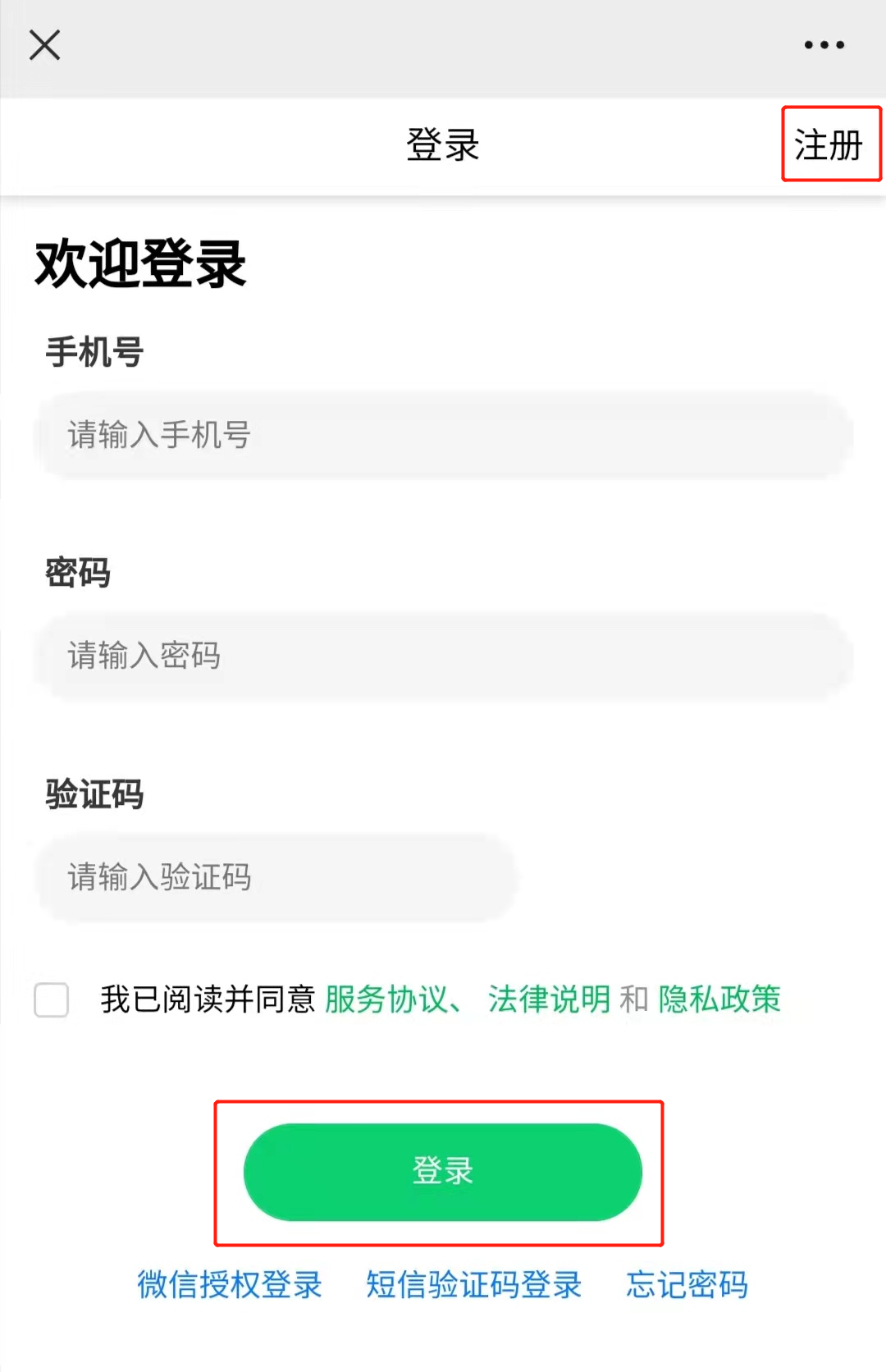 第五步:注册或登录账号(此账号为预防接种服务APP账号,如果之前注册过直接登录即可,如果之前没有注册过要先注册再登录);