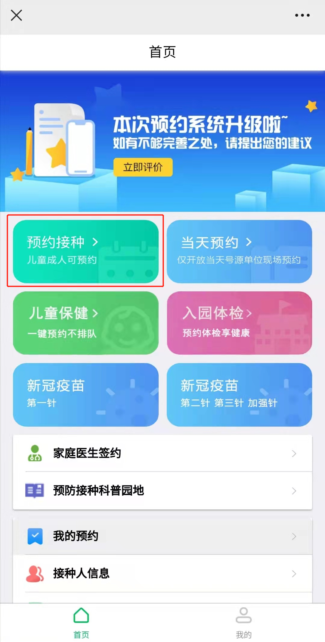 第二步:在首页,选择右下角【我要预约】--【预防接种预约】;