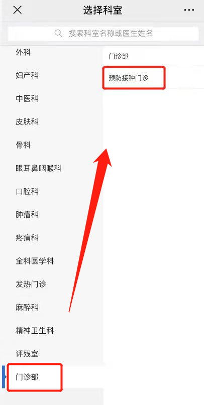 第三步:门诊部→预防接种门诊;