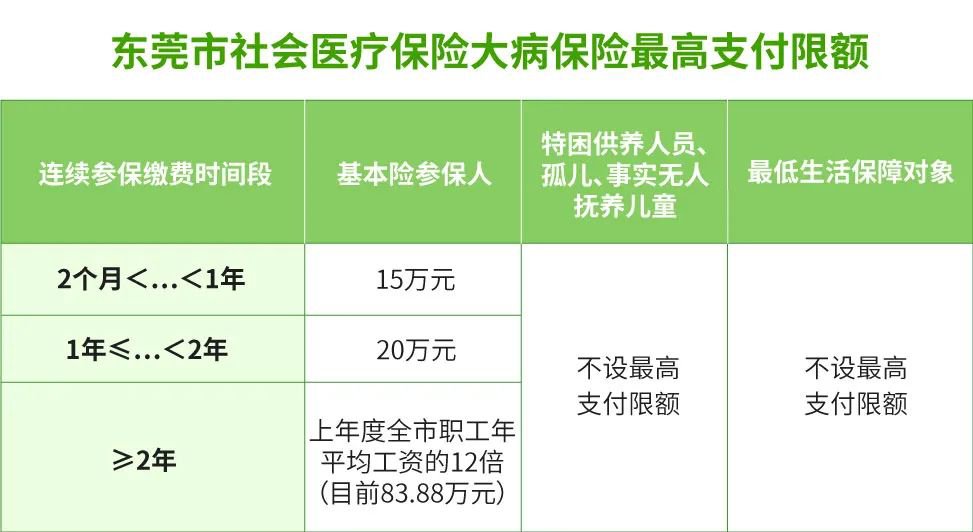 大病保险最高支付限额实施动态调整机制,连续参保缴费时间满2年的参保人,其大病保险最高支付限额为上年度全市职工年平均工资的12倍(目前约83.88万);特困供养人员、孤儿、事实无人抚养儿童及最低生活保障对象,其大病保险不设最高支付限额。