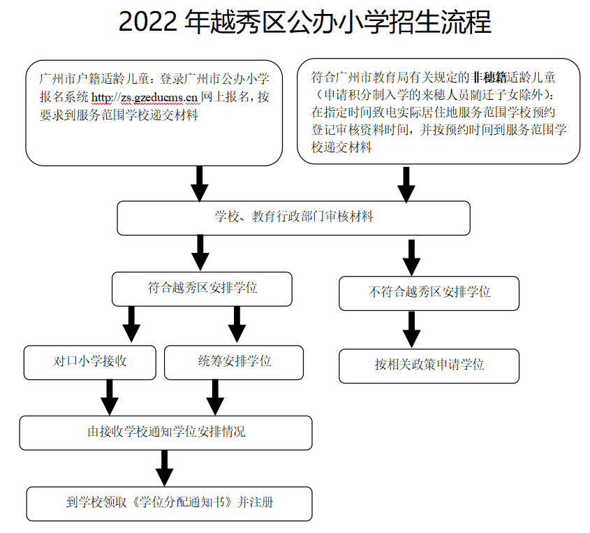 符合越秀区安排学位:由对口小学接收或统筹安排学位。