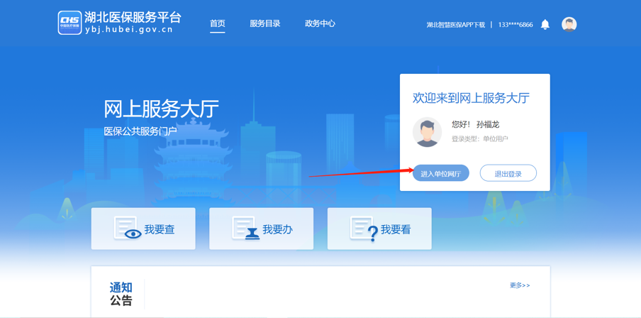 1、登录“湖北医保服务平台",进入“湖北医保服务平台”网上服务大厅界面,选择经办人账号登录。