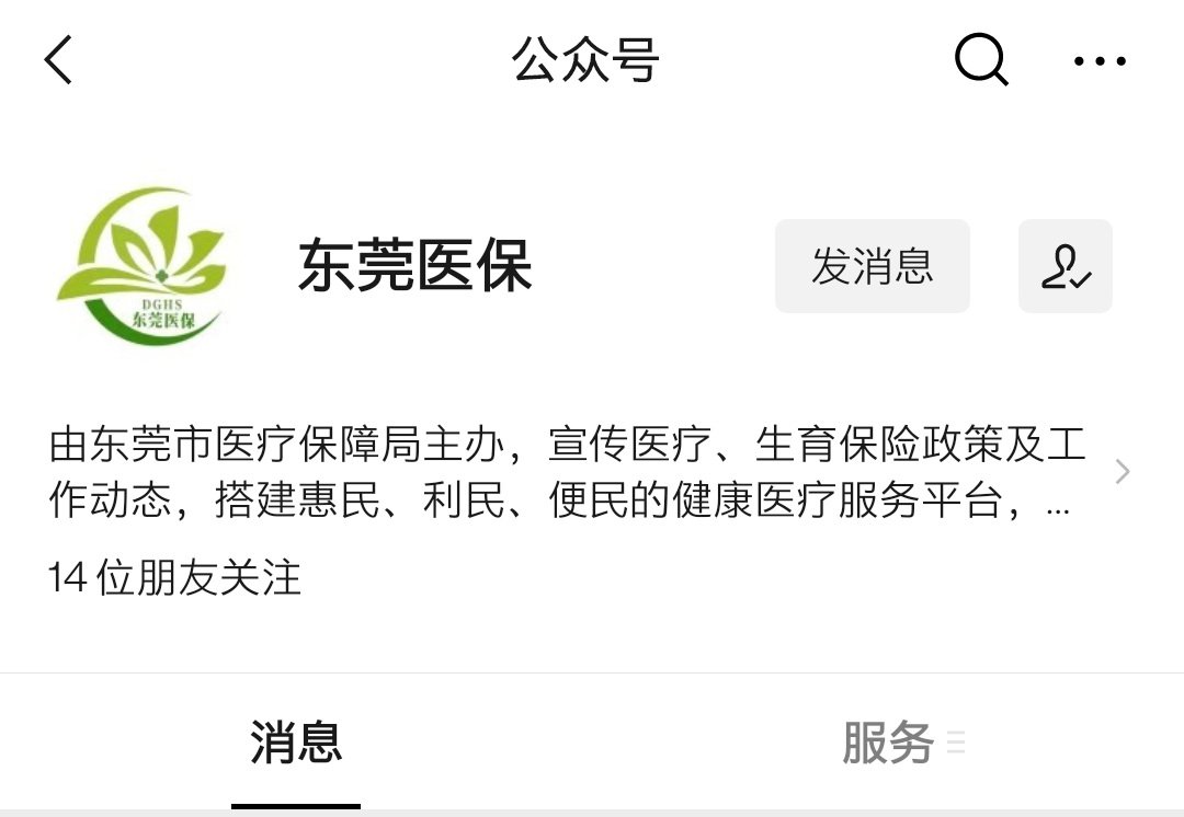 ①关注“东莞医保”微信公众号