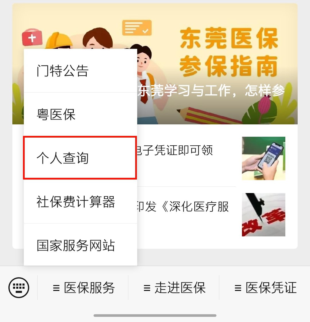 查询入口2:“东莞医保”微信公众号