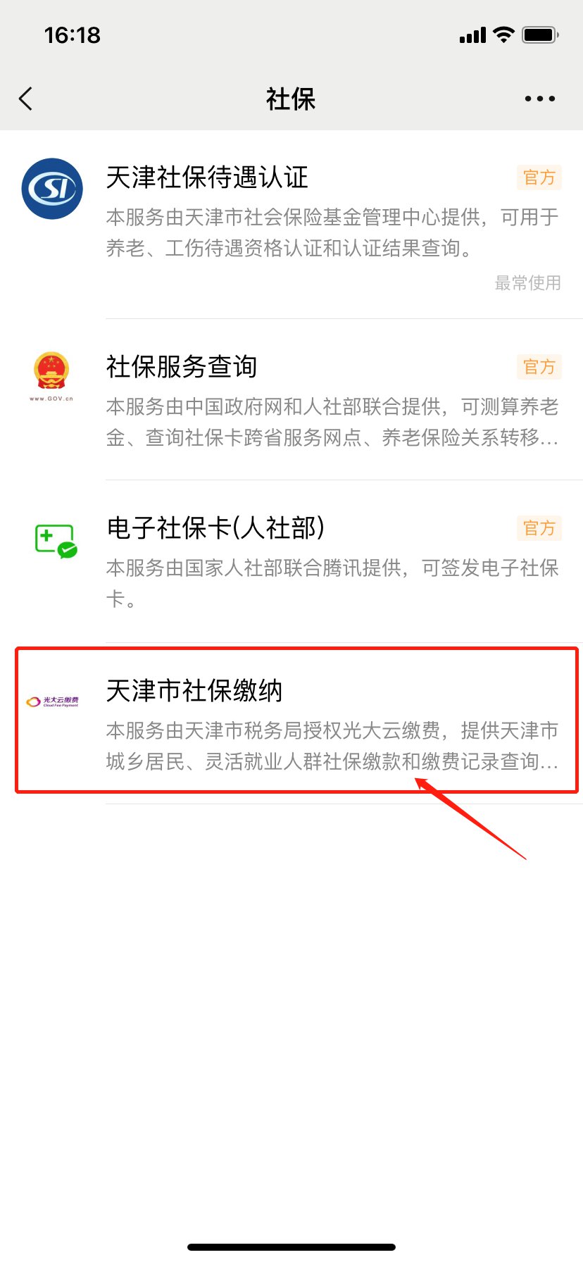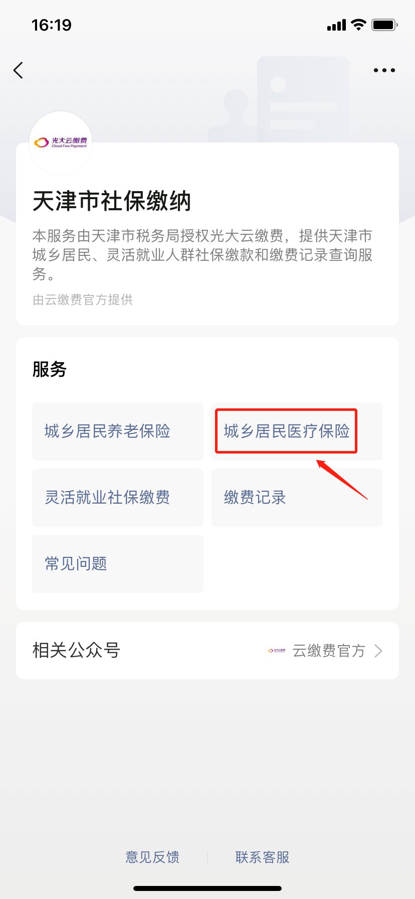 3.点击“天津市社保缴纳”-“城乡居民医疗保险”