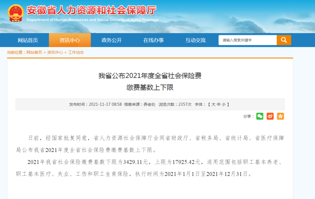 日前,经国家批复同意,省人力资源社会保障厅会同省财政厅、省税务局、省统计局、省医疗保障局公布我省2021年度全省社会保险费缴费基数上下限。