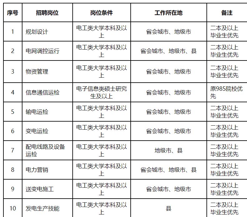 1.国家统招计划内全日制普通高等院校2022年应届毕业生;或符合国网公司招聘要求的国(境)外院校研究生。且相关学历信息在中国高等教育学历信息网(http://www.chsi.com.cn)可查。