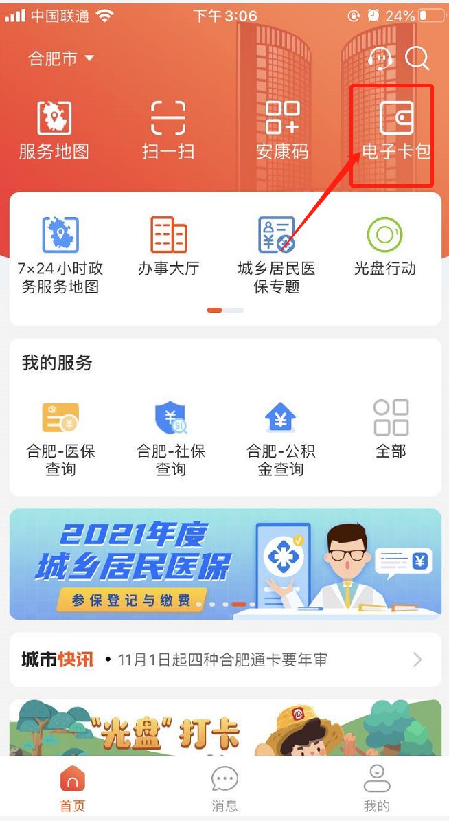 温馨提示:电子卡包若没有绑定电子社保卡,需要提前绑定哦!