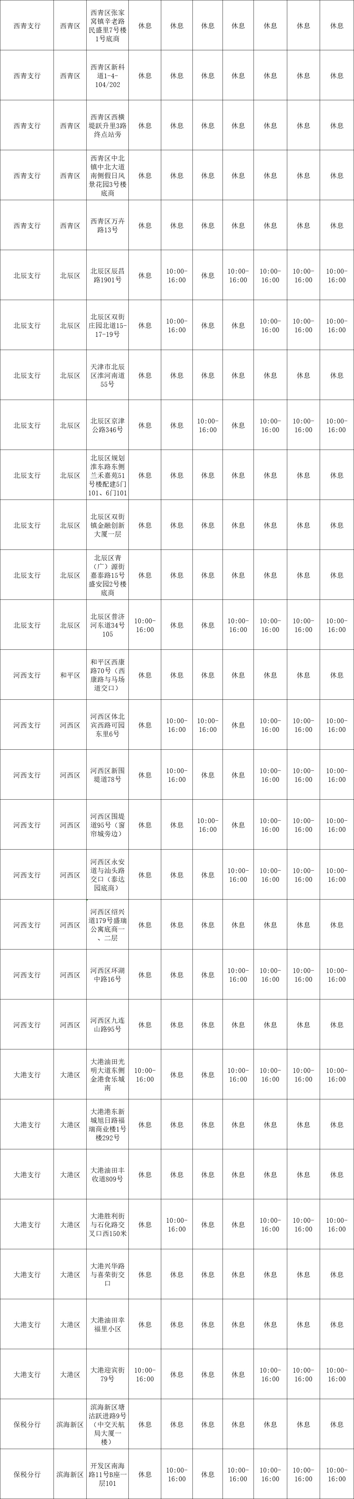 以下为工商银行天津各支行服务网点上班时间: