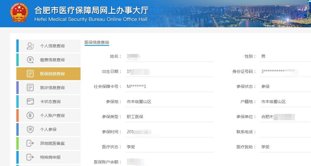 跳转到“合肥市医疗保障局网上办事大厅”,可进行缴费信息查询,参保信息查询、生育备案、异地就医备案、特殊病申报等功能,对应网页的说明进行申报办理。