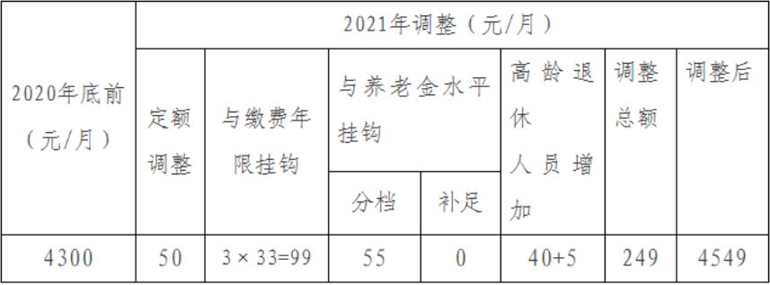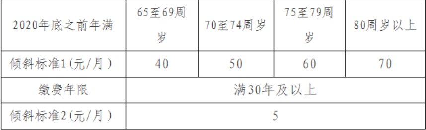 2021年继续坚持这一做法,对在2020年12月31日(含)之前已经年满65周岁及以上的高龄退休人员,在按照其他办法进行调整后,再次享受40元至70元四个档次的倾斜政策。