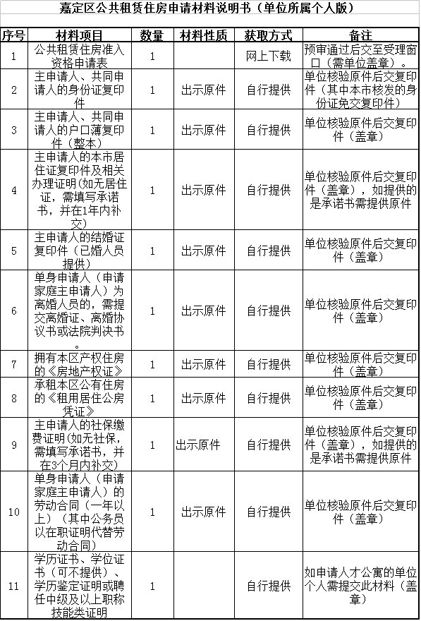 以上材料中如是单位个人申请的所提交材料需单位核验后提交复印件,并单位盖章。