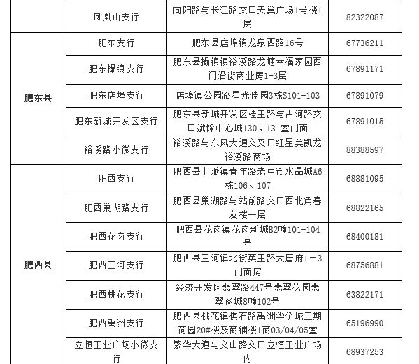 合肥市徽商银行网点一览