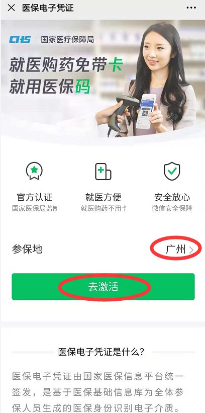 第二步:点击进去之后,确认参保地为广州,并点击【去激活】,如下图所示:
