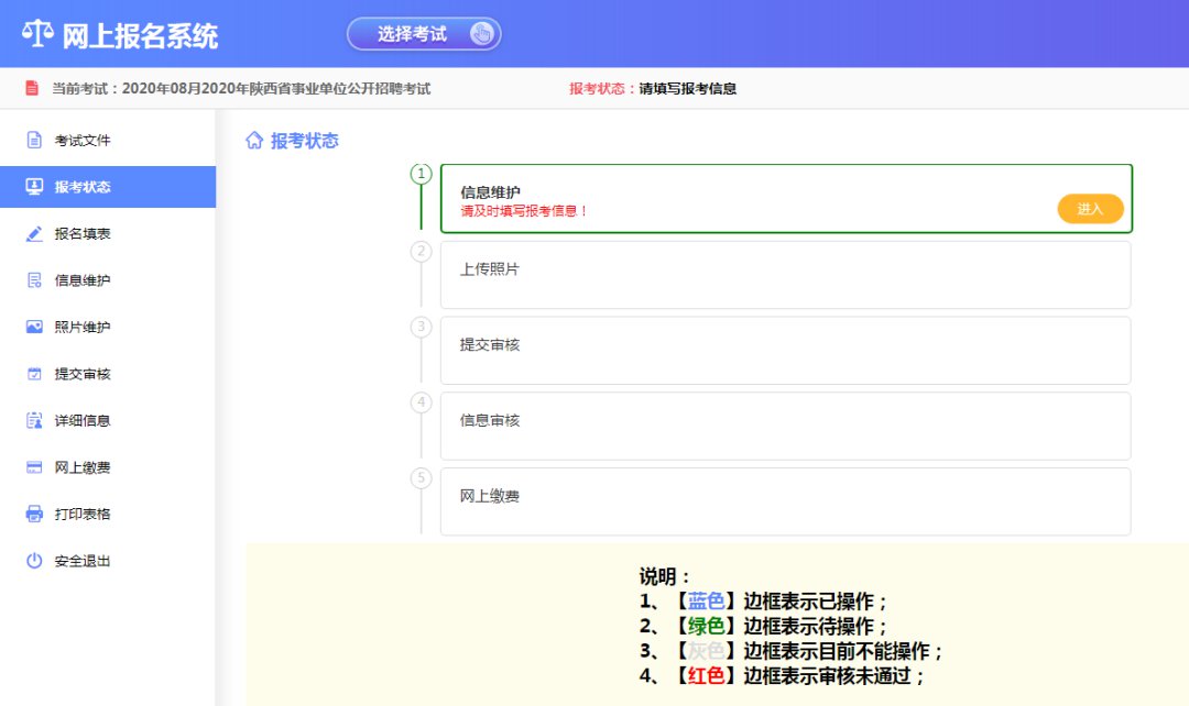 第三步、“考试文件”看完之后,开始填写“报考状态”里的信息。
