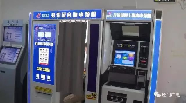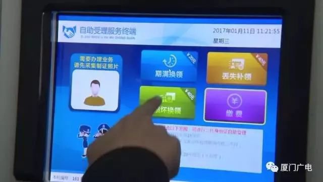 在照相隔间旁的机器上,选择好要办理的业务按照提示输入资料,完成指纹采集;