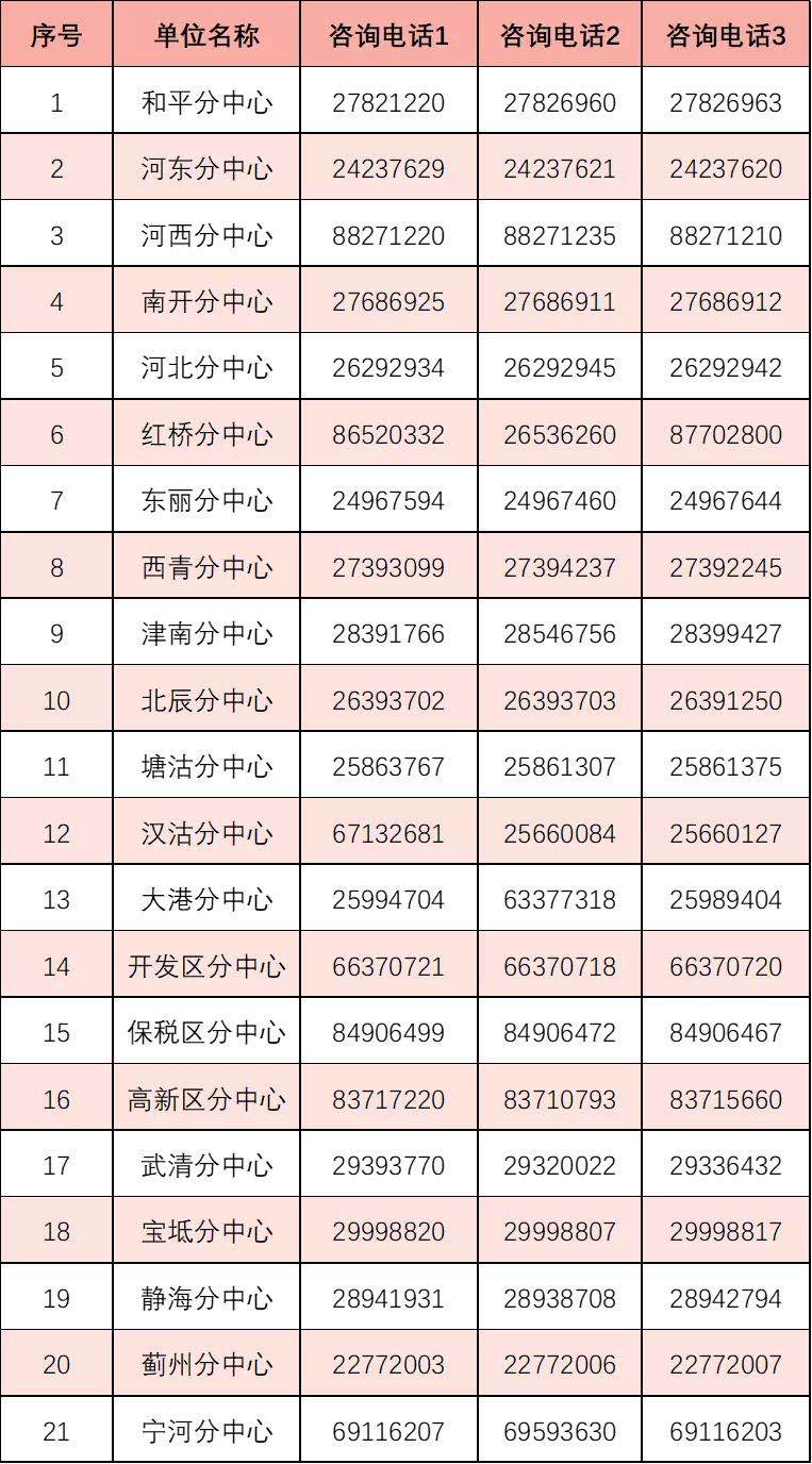 天津各区社保分中心地址+电话