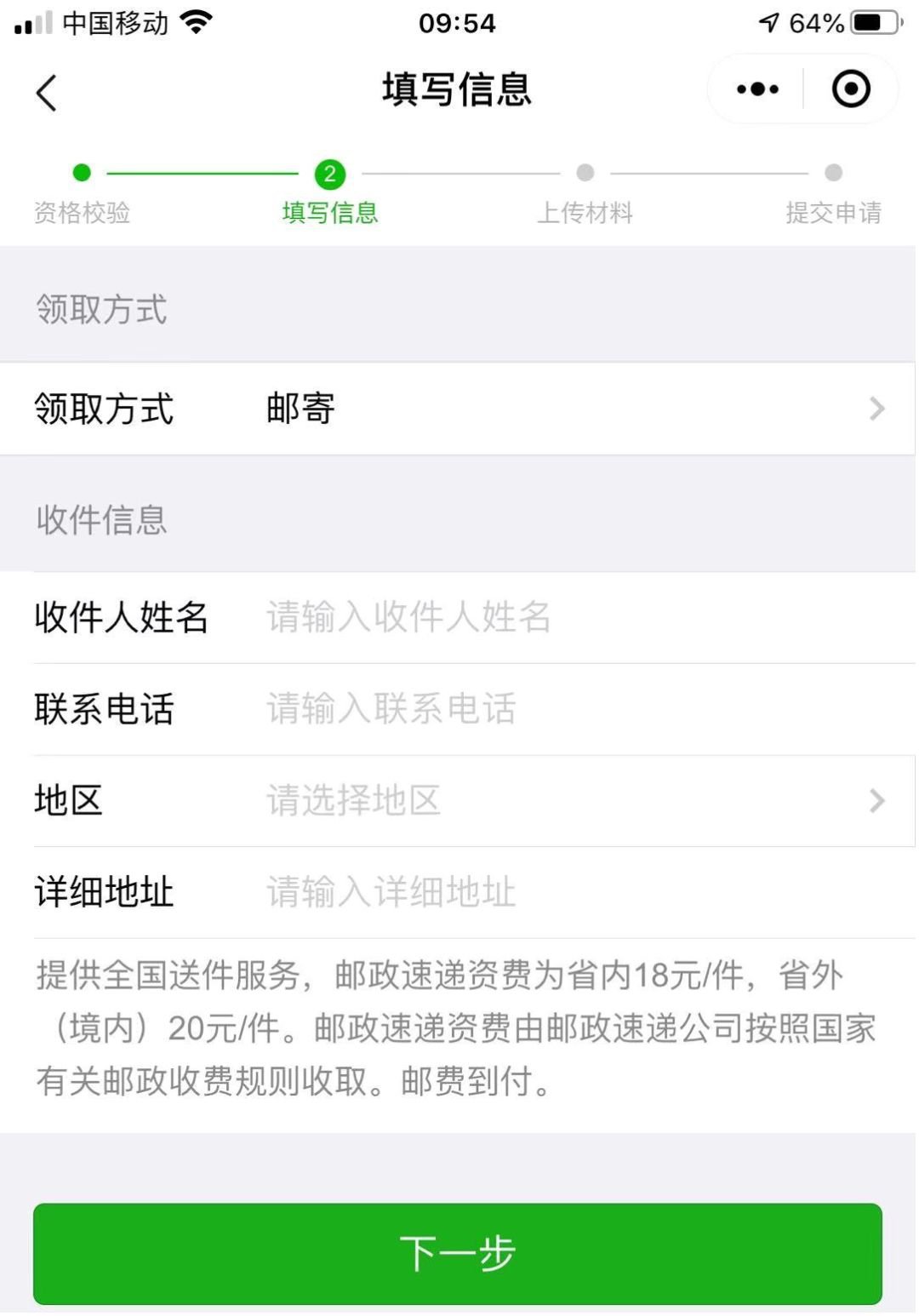 1、在微信小程序“粤省事”申请办理后,记得选择邮寄方式,填写收件地址、联系人、联系电话等信息
