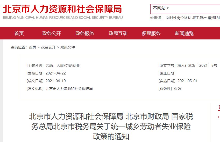 北京统一城乡劳动者失业保险政策的通知