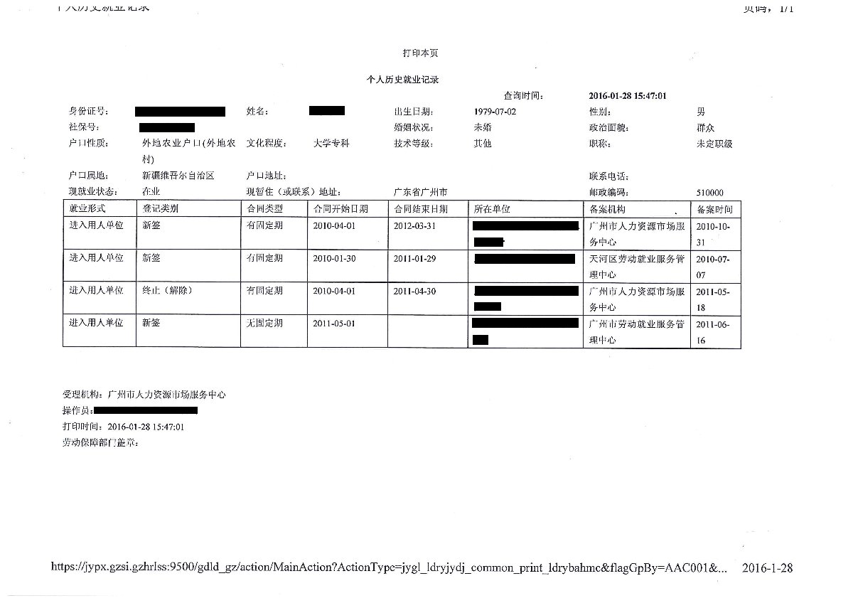 个人历史就业记录办理地点: