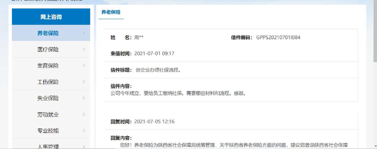 养老保险为陕西省社会保障局统筹管理,关于陕西省养老保险方面的问题,建议您登录陕西省社会保障局官网留言或具体咨询西安市养老保险经办处。