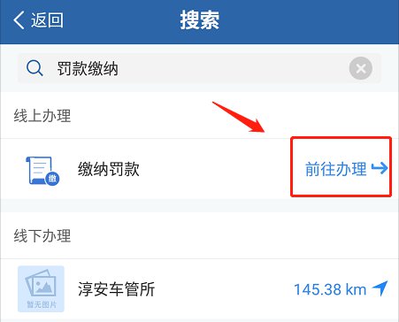 2、在搜索框输入“缴纳罚款”