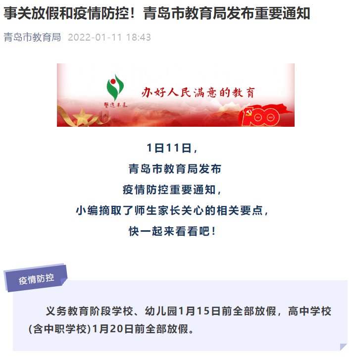 2022年1日11日,青岛市教育局发布疫情防控重要通知: